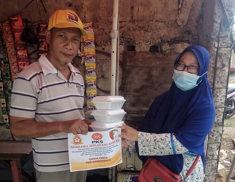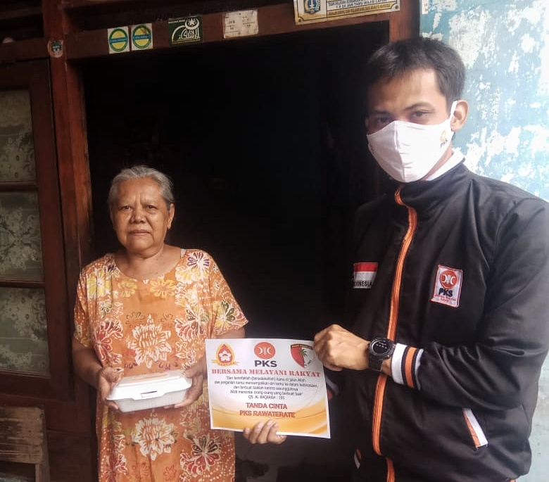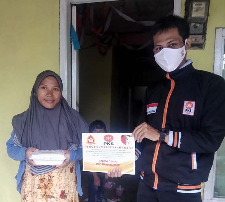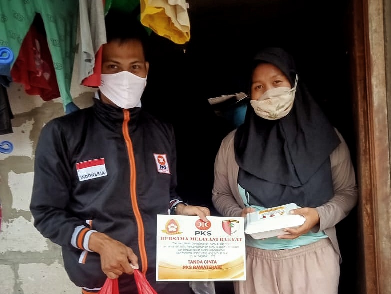 Meski cuaca tak bersahabat, DPRa PKS Rawaterate, Cakung Jakarta Timur, tetap melakukan kegiatan melayani rakyat dengan membagikan nasi box lengkap kepada warga yang membutuhkan di lingkungan RW 05 Rawaterate, Kecamatan Cakung, Jakarta Timur.