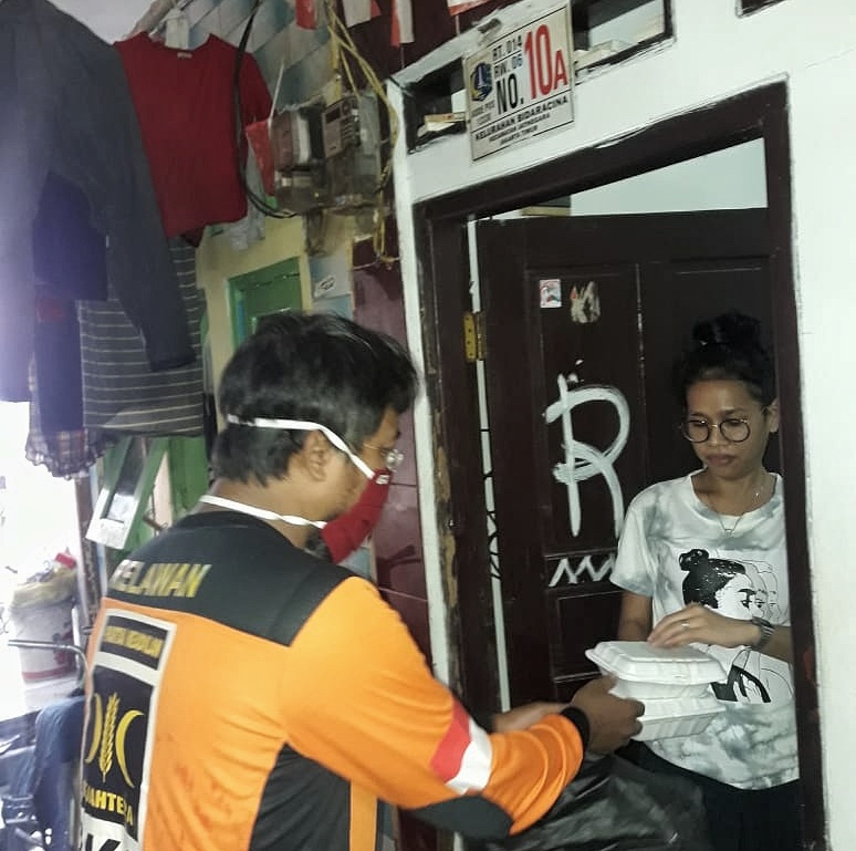 Dipimpin langsung Ketua BKO PKS Jakarta Timur, Bang gito, kader PKS mengunjungi rumah-rumah warga membagikan makanan siap saji.